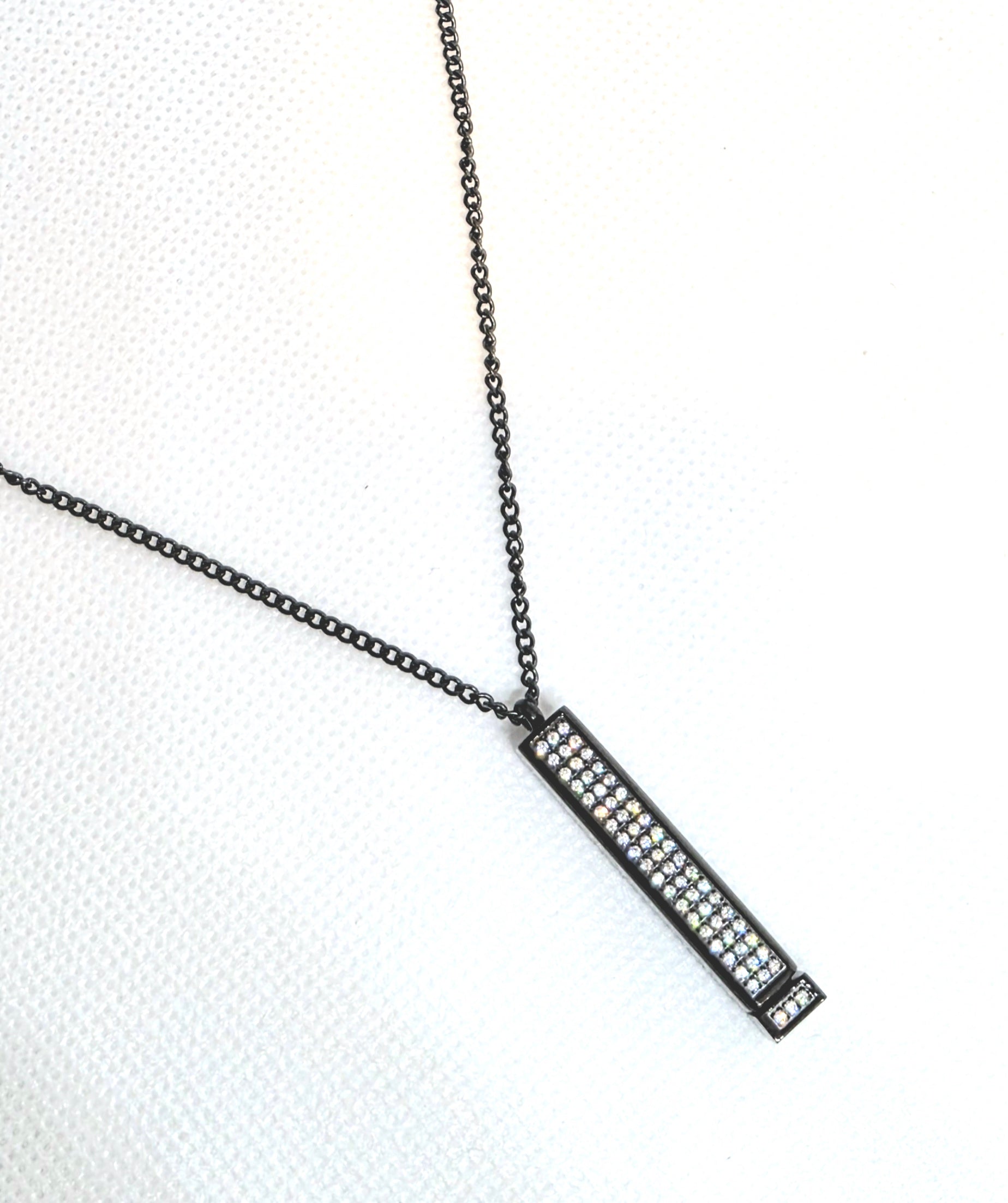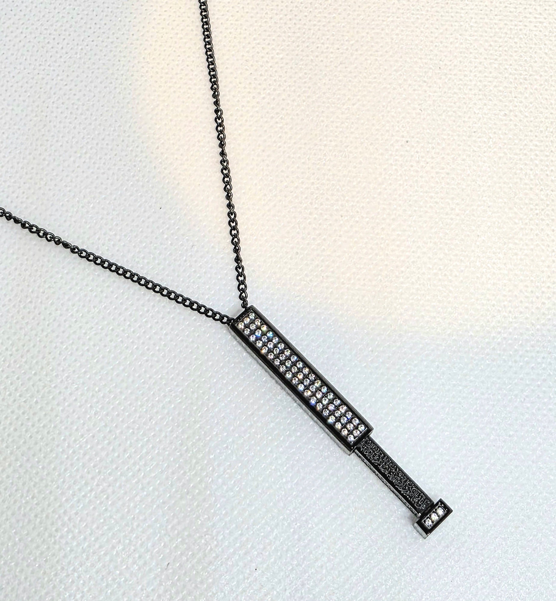 This pendant has an inner retractable bar inlaid with zircon. This Pendant features no engravings. Made for any occasion, any outfit. The chain is made of pure steel to give you a durable and reliable accessory for everyday wear.